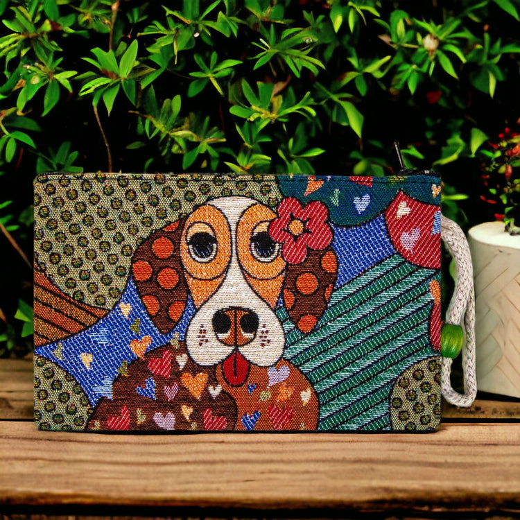 Authentic Kilim Fabric Colorful Modern Dog Art Zipper Clutch Purse, Turkish Carpet, Pouch, Coin Purse, Wallet, Small Storage Puppy Mom