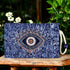 Authentic Kilim Fabric Ottoman Blue Evil Eye Design Zipper Clutch Purse, Turkish Carpet, Pouch, Coin Purse, Wallet, Small Storage